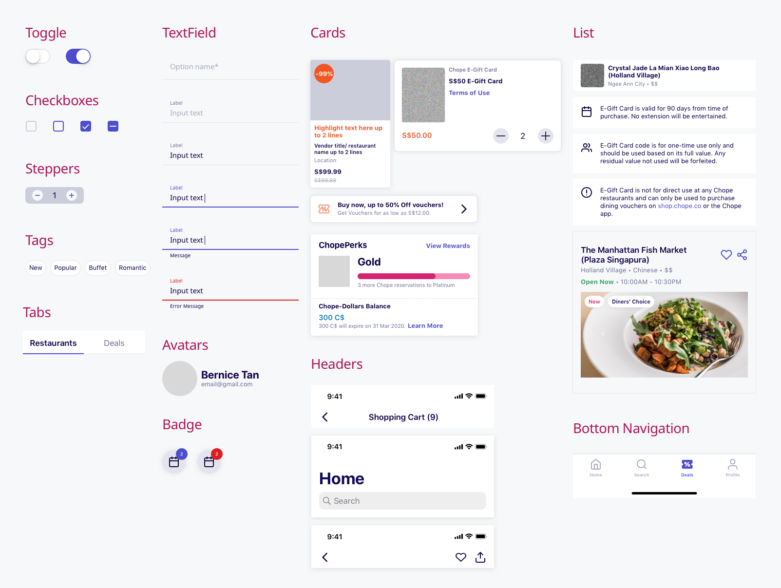 The end results are, a large amount of time saved when building production specification for handoff sessions, less design misalignment in production specification, and the product suite of Chope finally looks like a family